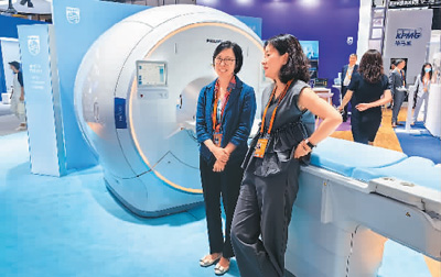 飞利浦展区展示的新一代无液氦磁共振产品。
