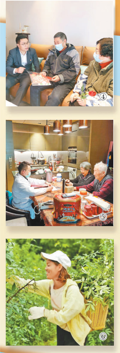 “阿姨,您千万要控制饮食,减少碳水摄入。”腊月二十三上午,江苏省南京市建邺区兴隆社区卫生服务中心全科医生孙滨(见图⑤左一,熊晓文摄)正在通过微信了解社区居民健康状况,并叮嘱日常注意事项。每天不间断地接听居民电话、回复健康咨询信息是孙滨的工作常态,无论什么时候,只要居民有需求,他都立刻解答。