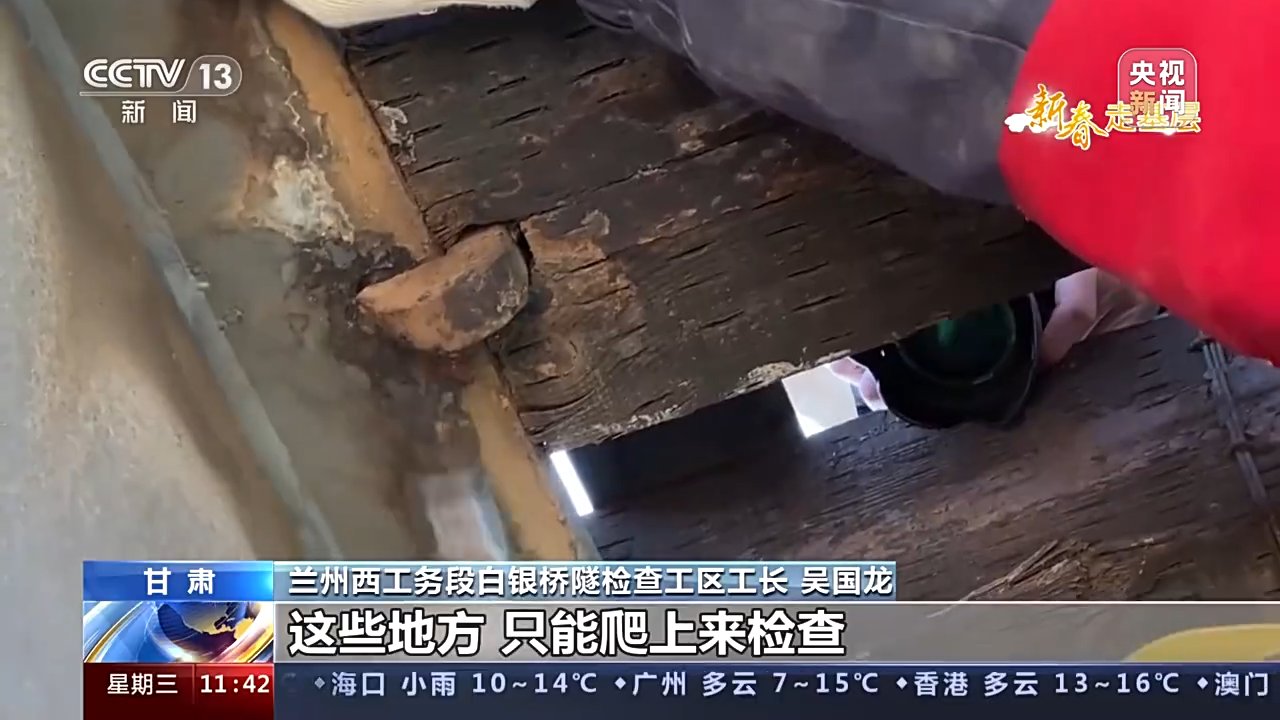 兰州西工务段白银桥隧检查工区工长 吴国龙:这些地方,我们只能爬上来检查,因为下面够不着。