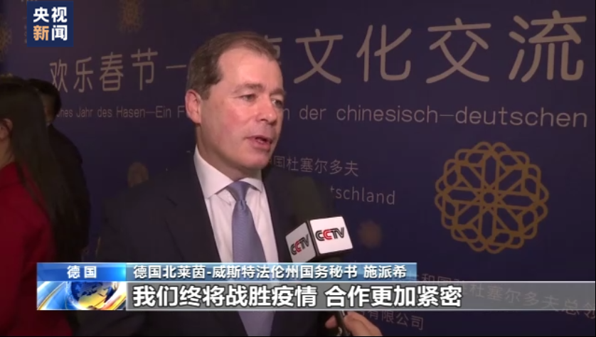 德国北莱茵-威斯特法伦州国务秘书 施派希:我非常欢迎双边交流的机会,希望疫情早日结束,虽然这并不容易。我们终将战胜疫情,合作更加紧密,双方的交流是多层面的、经济的、商务的。