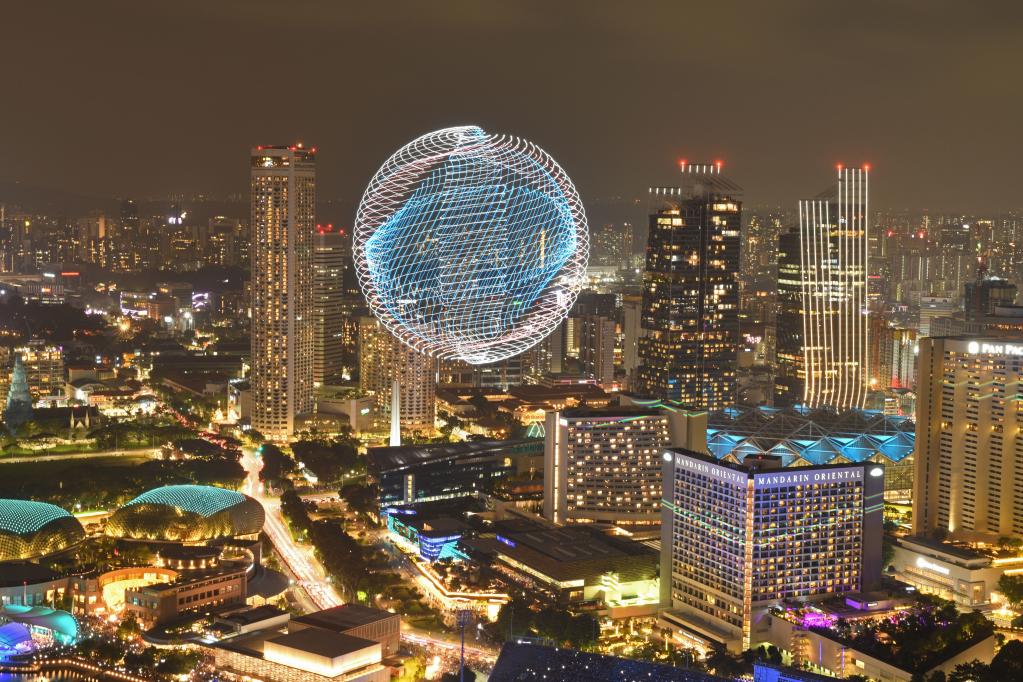 这是2022年12月31日在新加坡滨海湾拍摄的无人机灯光秀。新华社发(邓智炜摄)