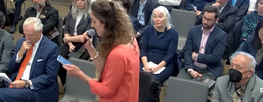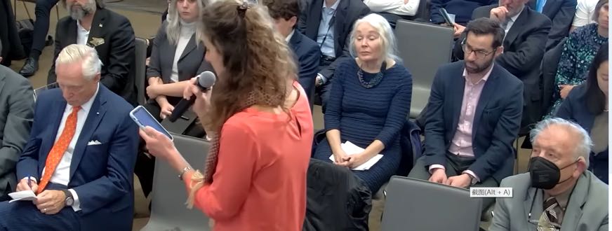 女记者在活动现场痛斥美国把中国视为敌人。她表示:“战争不是游戏,它的代价对人类和地球来说是巨大的,美国在反恐战争上花费了21万亿美元再加上我们在乌克兰的开支,我们从中学到了什么?武器制造商在通过杀戮赚的盆满钵满时,美国以及世界各地的人们却在挣扎挨饿,真令人羞耻!我们的共同敌人是气候危机而不是中国。”