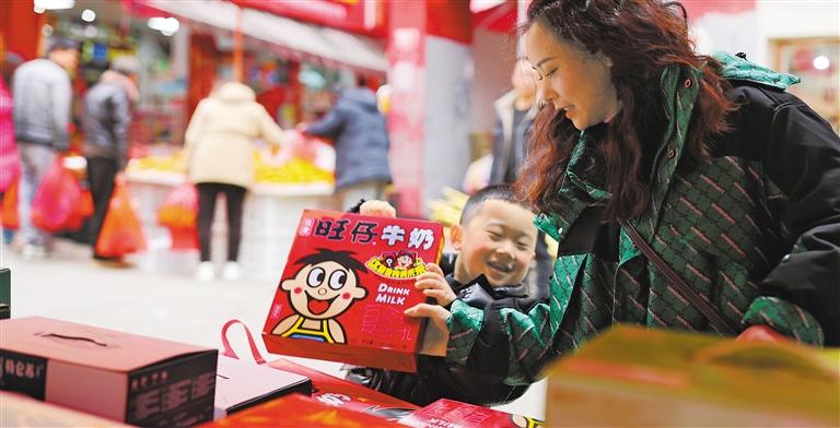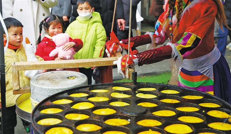 ◀1月25日,四川省眉山市东坡区穿越城美食街,当地特色小吃吸引了小朋友的目光。姚永亮摄(中经视觉)