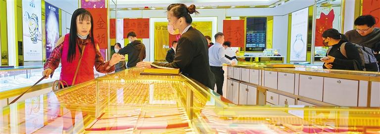 ▼1月25日,顾客在海南省海口市府城一家黄金店挑选黄金饰品。张 茂摄(中经视觉)