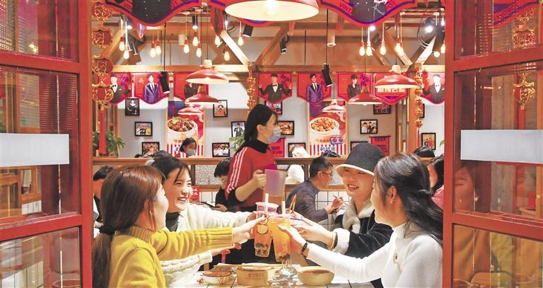 ▲1月24日,顾客在河北省邯郸市永年区新世纪广场享受美食。当地餐饮业春节期间不打烊,生意火爆。胡高雷摄(中经视觉)