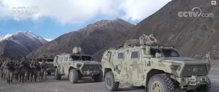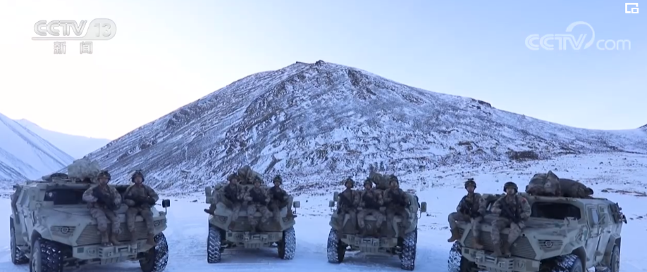 正月初一一大早,在喀喇昆仑高原驻训的新疆军区某合成团官兵们,做好防寒保暖措施后,开始了巡逻勘察任务。