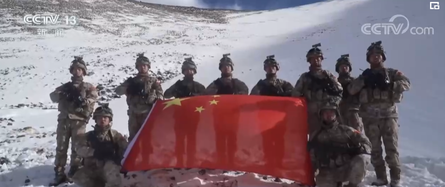 30分钟后,官兵们到达巡逻点位,由于道路积雪深厚,巡逻分队下车徒步前行。他们一路爬雪山、攀岩壁、蹚冰河。几个小时后,终于抵达最后一个巡逻点位。在凛冽的寒风中,官兵们面向国旗庄严宣誓,声声誓言铿锵有力,响彻雪域高原。