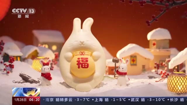 琳琅满目的商品里,兔元素的潮流手办、文创日历、服饰品牌正在热卖。不少国货品牌也献上了老字号的兔年“新”意。老字号香囊品牌推出的“三兔共耳”系列将传统非遗技艺和时下潮流审美相结合,一些老字号品牌还和国际品牌跨界合作,推出带有可爱白兔形象的服饰、包包。