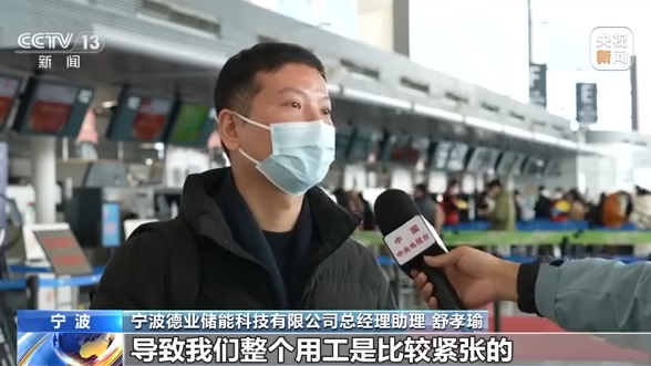 宁波德业储能科技有限公司总经理助理 舒孝瑜:订单应该是爆发增长,导致我们整个用工是比较紧张的。我想自己亲自去一趟我们的贵州,看看到底我们的劳务的情况怎么样。