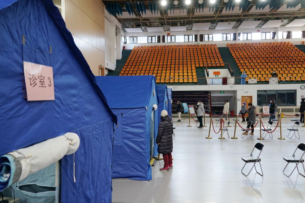 这是2022年12月24日拍摄的北京市西城区广安体育馆简易发热门诊。新华社记者张晨霖摄
