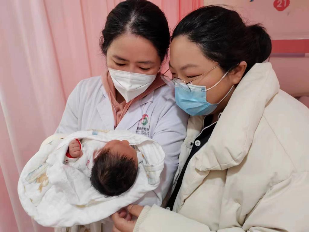 2022年12月,余腊梅在江西省妇幼保健院为阳性孕产妇顺利进行剖宫产手术后,第一个出生的宝宝(受访者供图)