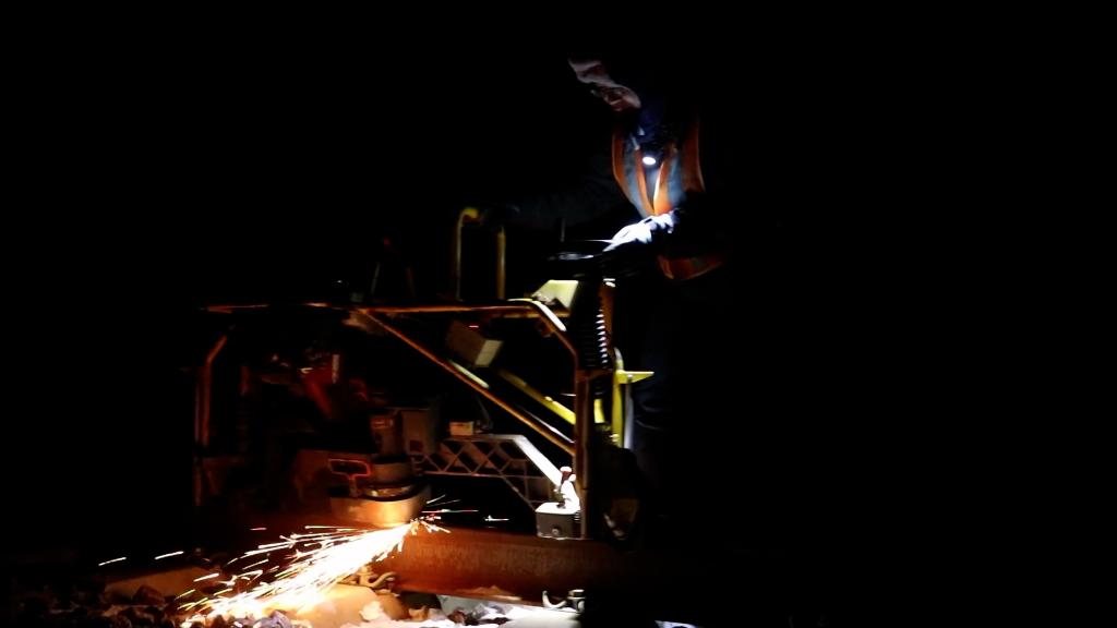 凌晨时分,铁路工人推着打磨机在钢轨上匀速移动,打磨时闪出的火花在寒气袭人的深夜中格外温暖。这样的“深夜作战”,已成为这群“钢轨美容师”的常态。