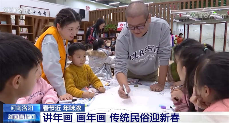 春节前夕,河南洛阳依托当地各级图书馆、城市书房、农家书屋等推出全民阅读迎新春活动,在洛阳少儿图书馆内,当地多名插画师携手小读者们讲年画、学年画、画年画,带领孩子们了解中华传统文化和春节民俗。
