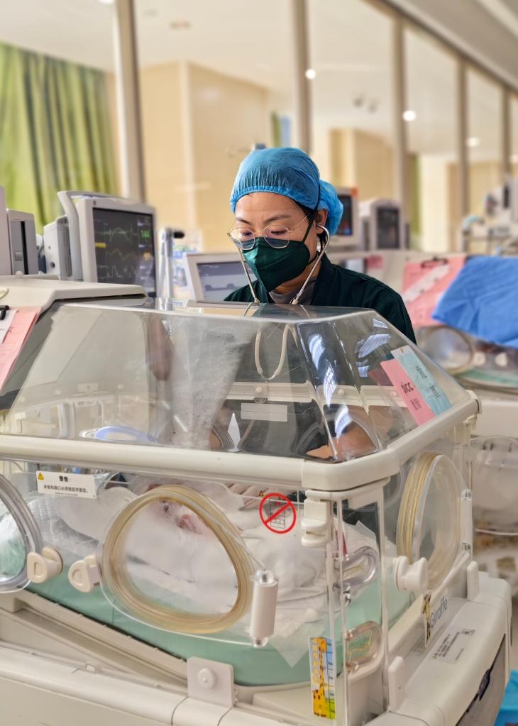 这对双胞胎女孩,一个1000多克,另一个只有800多克。转运到新生儿重症监护室后,肖超景与同事立即进入工作状态:查看呼吸情况、监测血氧、检查感染指标……这是几天前发生在内蒙古自治区妇幼保健院新生儿重症监护室的紧张一幕。