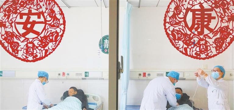 ◀1月21日,湖南省新田县人民医院五官科,医护人员在给患者查体治疗。刘贵雄摄(中经视觉)