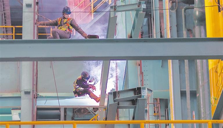 ◀1月22日,内蒙古兴安盟敬业集团乌兰浩特钢铁有限责任公司,员工坚守在生产线上。郑志宏摄(中经视觉)