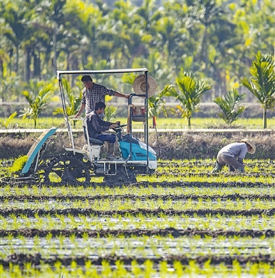 1月13日,海南省琼海市博鳌镇北山村,村民在插秧。蒙钟德摄(人民视觉)