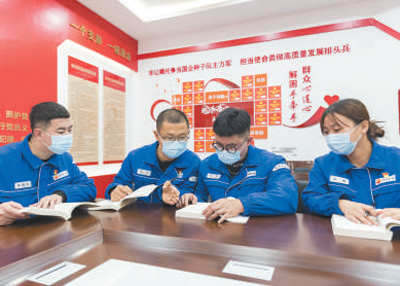 记者在辽阳石化采访时,企业员工在集体研学党的二十大精神。张 森摄