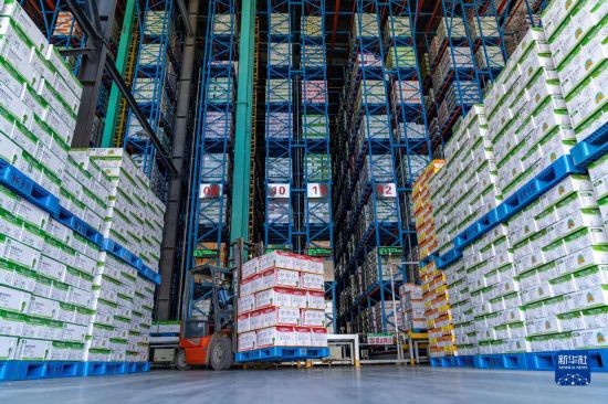 1月29日,工人在安徽省合肥市肥东县合肥循环经济示范园内的一家公司农资智能仓库忙着出库农资。