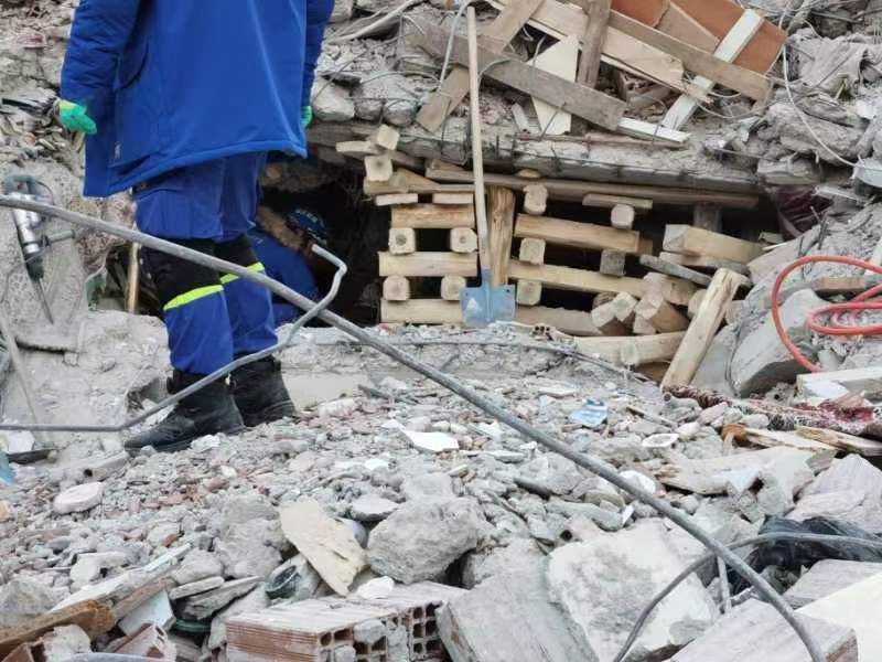 蓝天救援队在土耳其马拉蒂亚市灾区现场搜救。张昀路供图