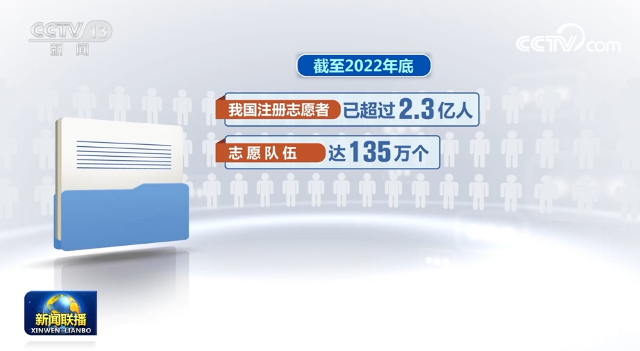 统计数据显示,截至2022年底,我国注册志愿者已超过2.3亿人,志愿队伍总数达135万个。广为弘扬的雷锋精神,成为新时代推进社会主义现代化建设、提升社会文明进步的强大力量。