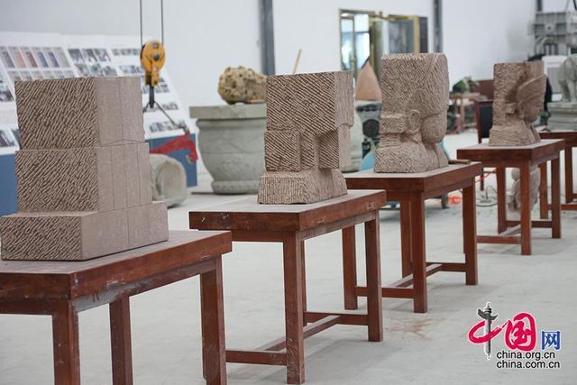 在重庆大足石刻文创园,直观展示了由石材到初具轮廓的艺术品的过程。中国网记者 伦晓璇 摄