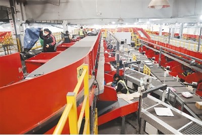需求高涨,快递小哥疾驰在路上,商家忙着安排发货。
