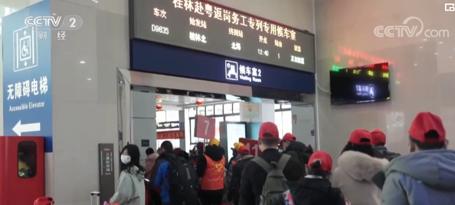 中国铁路南宁局集团有限公司客运部副主任 赵荃:到2月8日前,已经确定在桂林北、三江南、田阳等8个车站开行11列到广东的务工人员动车专列,开行数量比前三年同期之和还多。同时,我们还在南宁东、柳州、贵港、北海4个车站开行7对到广州南、深圳北、珠海的夜间动车组列车,最大限度服务务工人员返岗复工。
