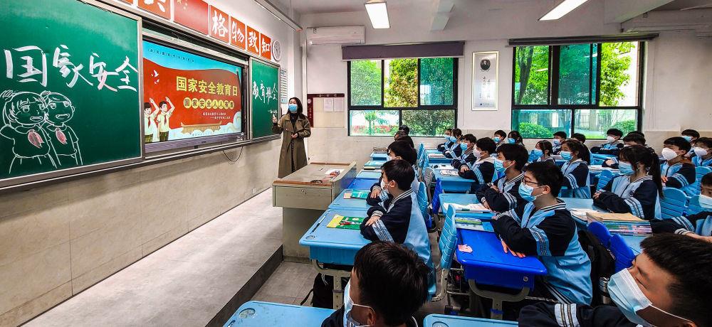 △2022年4月14日,在湖南衡阳一学校,老师向学生讲解国家安全知识。