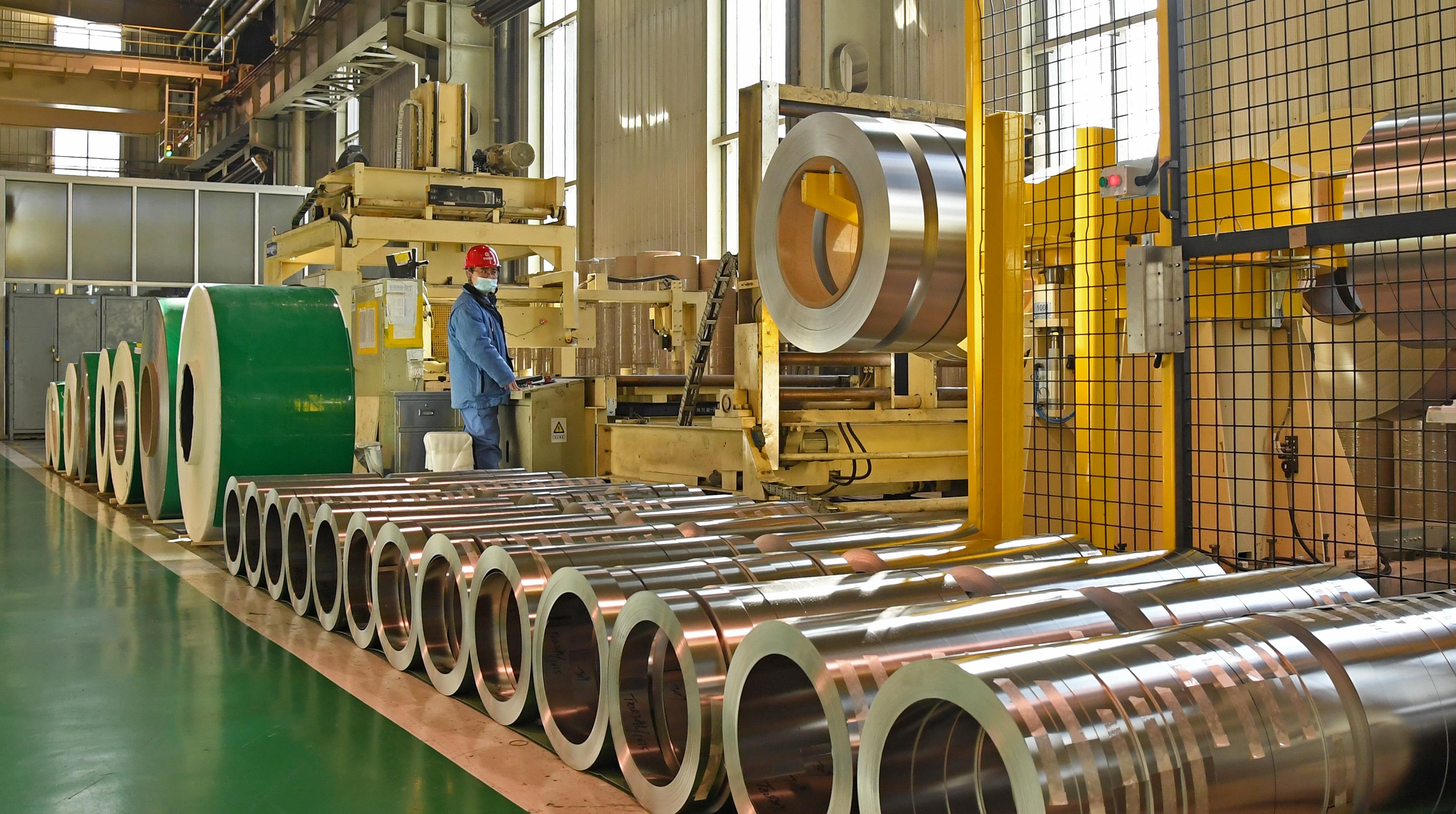 △中国宝武太钢集团精密带钢公司生产车间。该公司生产的不锈钢精密箔材(俗称“手撕钢”)已有3大类20多个系列品种全面走向市场,受到国内外用户青睐。