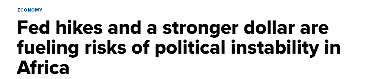 △美国CNBC发文表示,美联储加息和美元走强加剧了非洲政治不稳定的风险