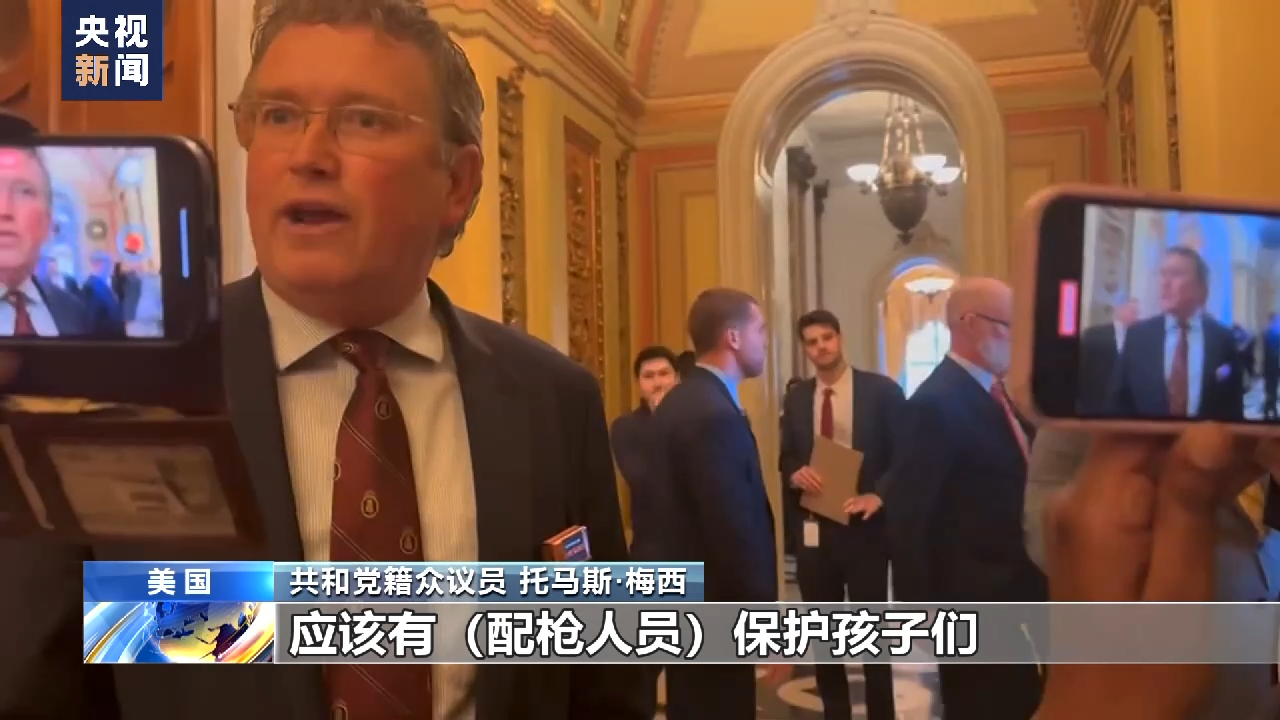 共和党籍众议员 托马斯·梅西:你看我们这(国会大厦)有(持枪警察)保护着我们,可他却不相信应该有(配枪人员)保护孩子们。