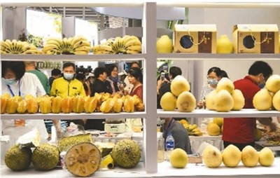 图为在南宁国际会展中心,观众在第十九届中国—东盟博览会农业展参观广西名特优水果。
