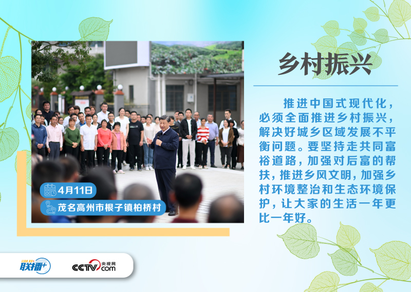 联播+“广东是改革开放的排头兵、先行地、实验区,在中国式现代化建设的大局中地位重要、作用突出。”4月10日至13日,习近平总书记先后来到湛江、茂名、广州等地,深入企业、港口、农村等进行考察调研。