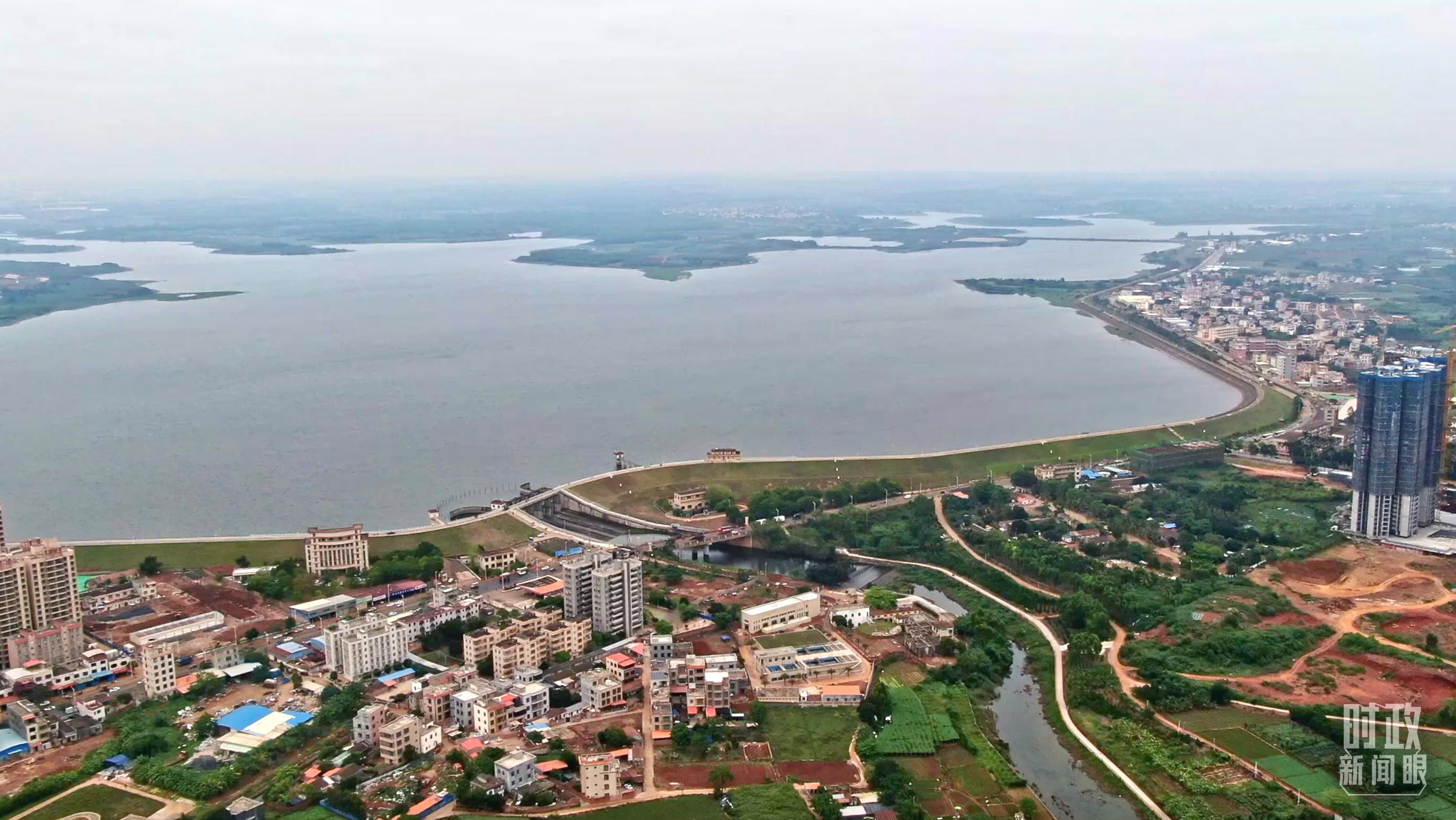 △水库沿岸的城市。(总台央广记者潘毅拍摄)