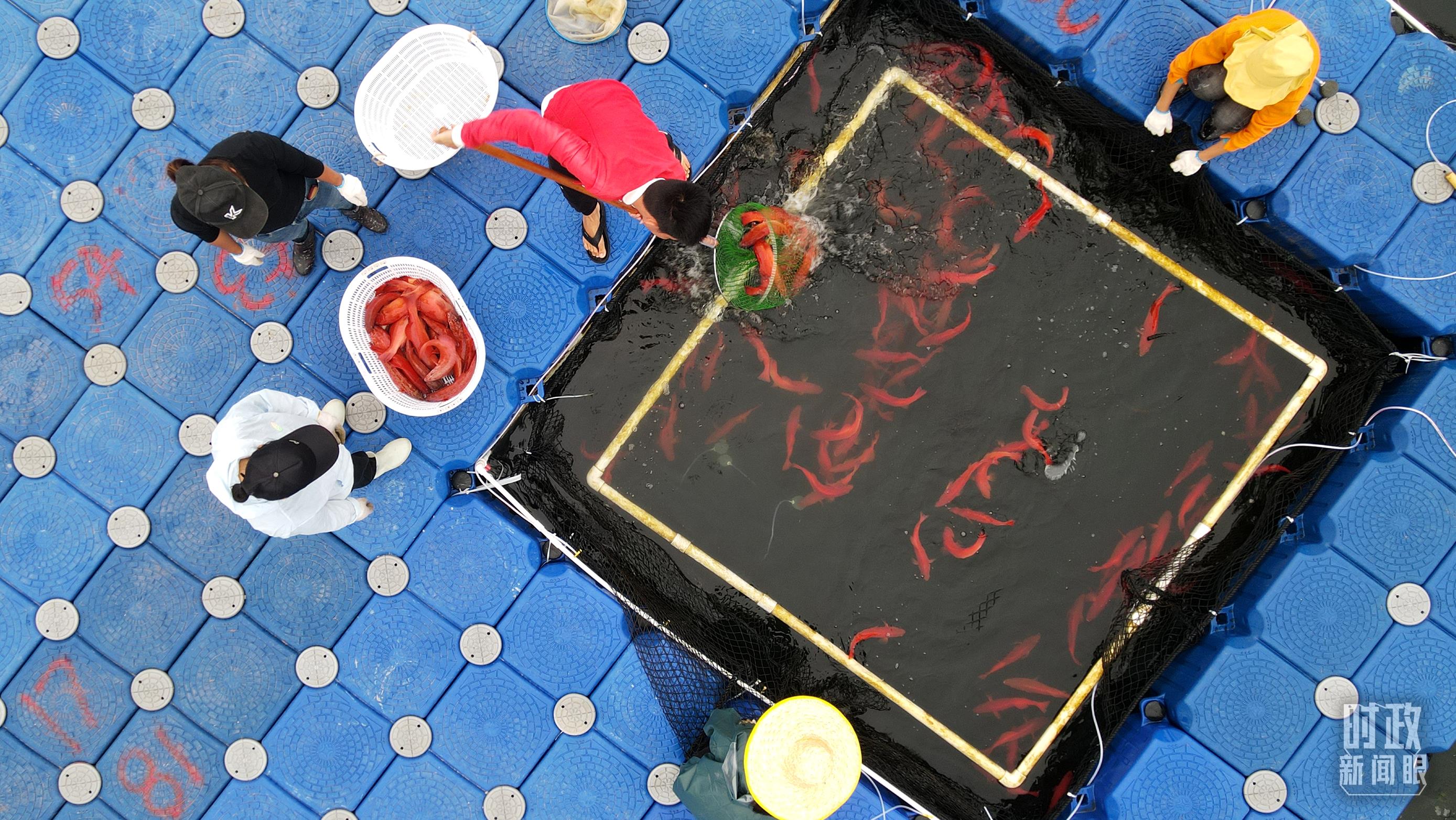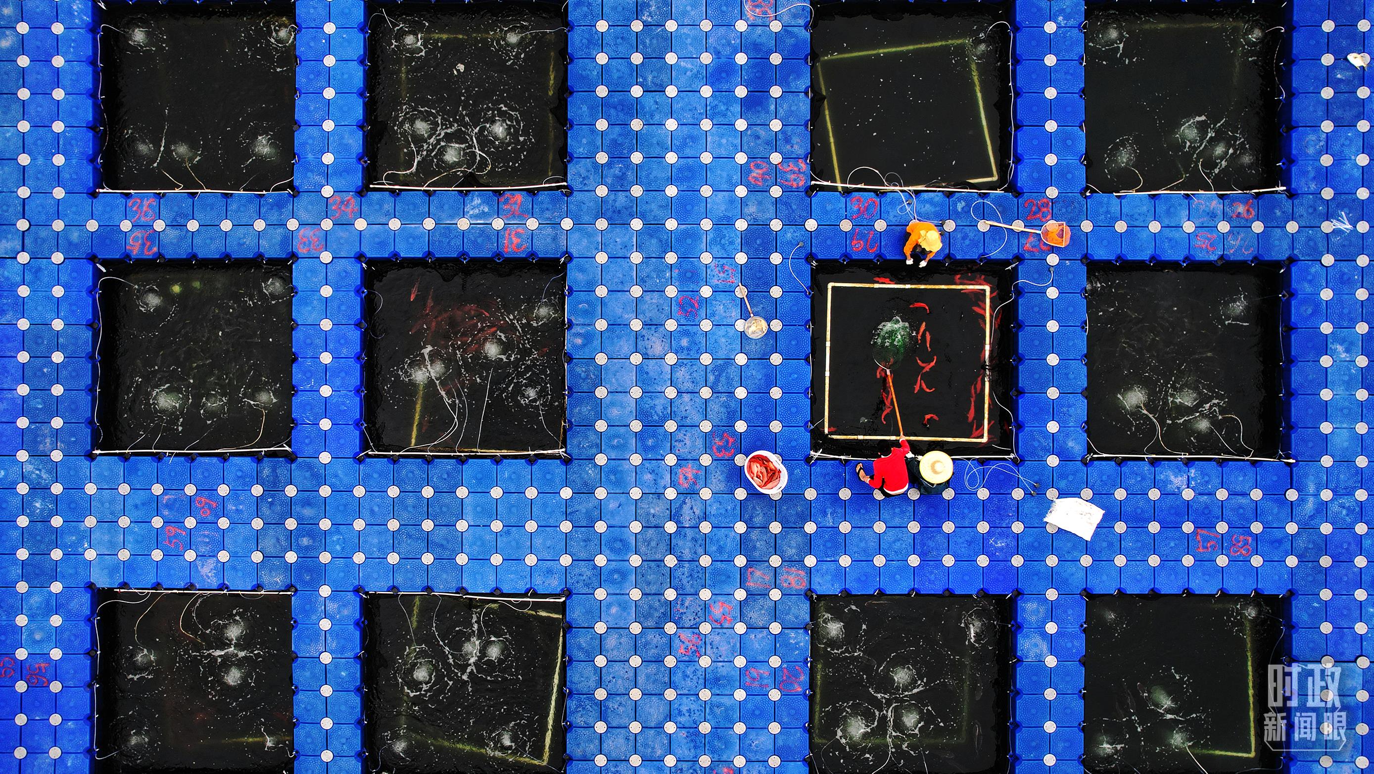 △浮筒式池塘网箱。(总台央视记者刘琦拍摄)