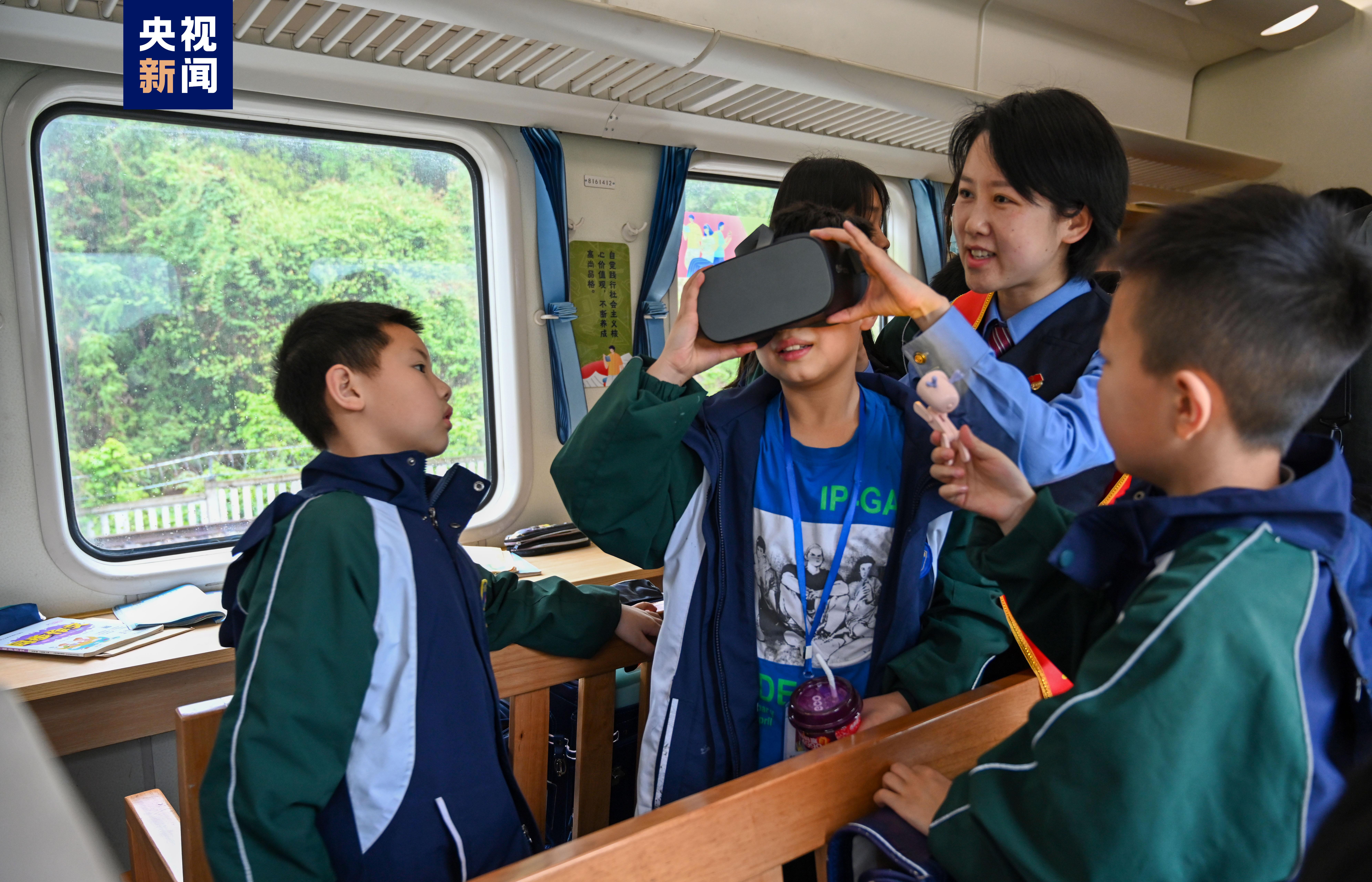 列车书屋内还举行了首次文化主题活动。重庆客运段管内车队乘务人员邀请旅客参与VR沉浸式体验活动。旅客在工作人员帮助下穿戴仪器,观看科学探索、宇宙星空、人体奥秘、自然地理、地球生物等30多种科普资源,体验虚拟现实技术打造的丰富逼真场景。“看图猜诗”活动则吸引了学生旅客的参与。