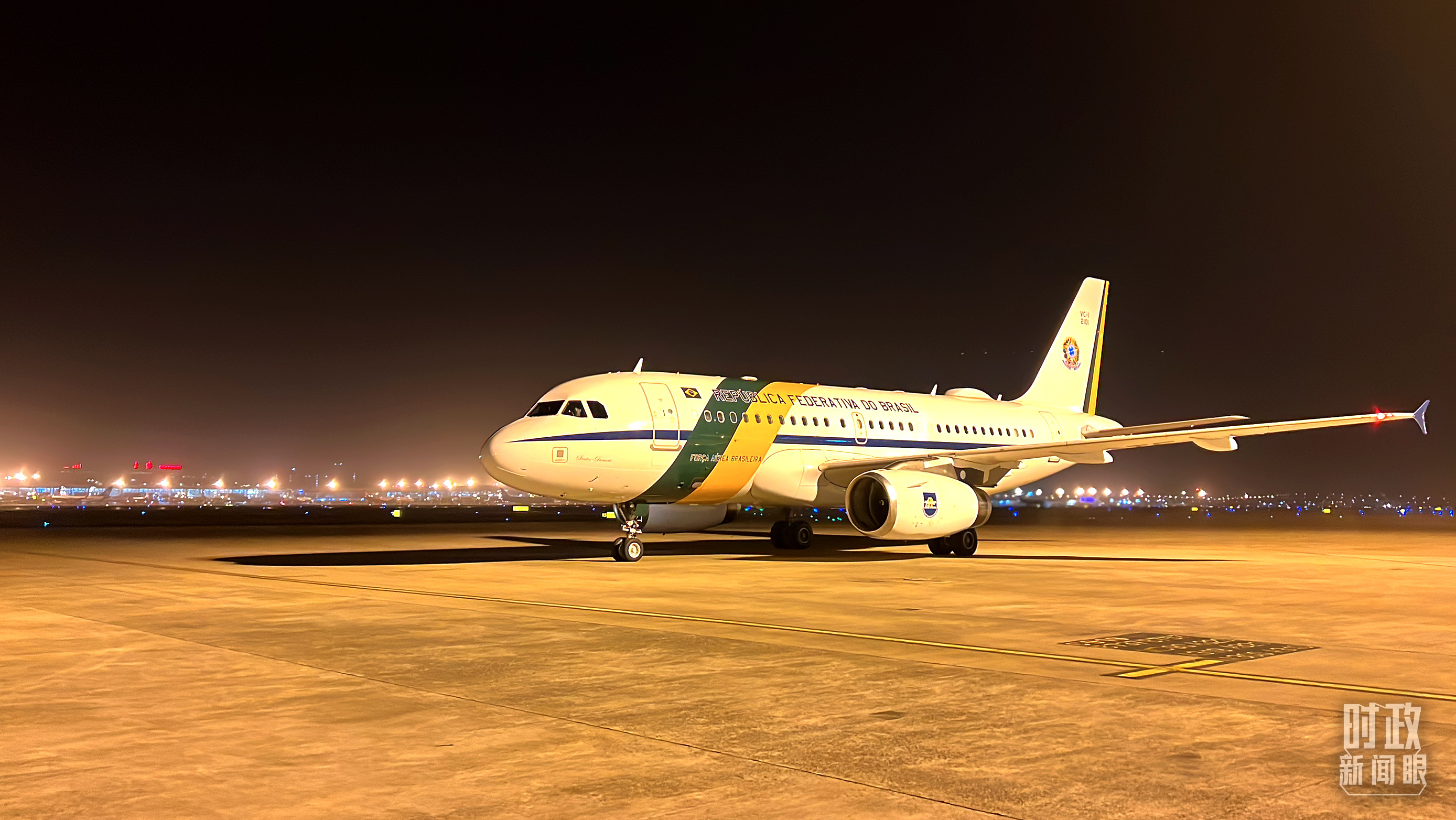 △卢拉总统乘坐的飞机抵达上海。(总台央视记者杨新禹拍摄)