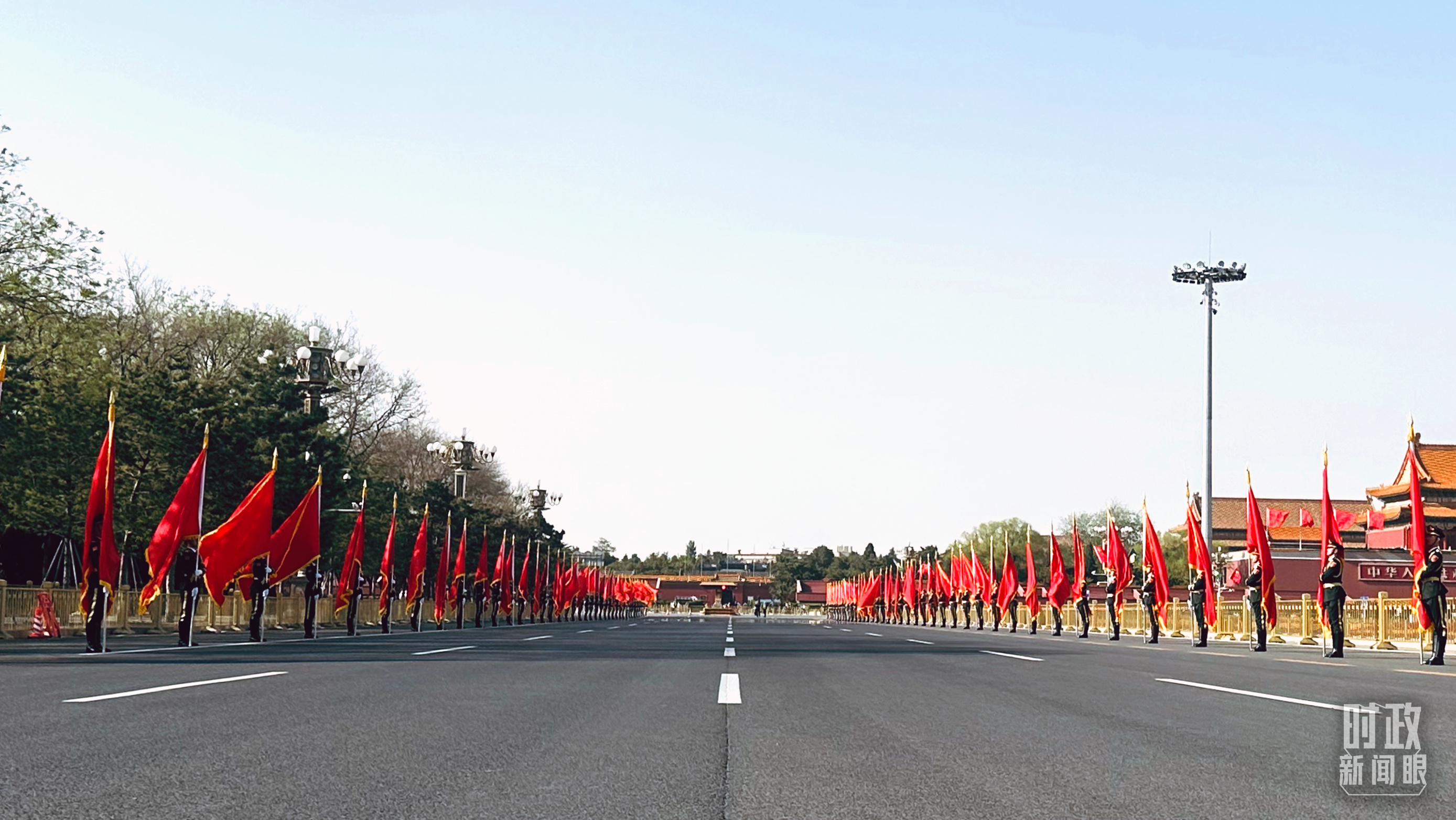 △长安街两侧悬挂起中巴两国国旗。(总台央视记者陆泓宇拍摄)