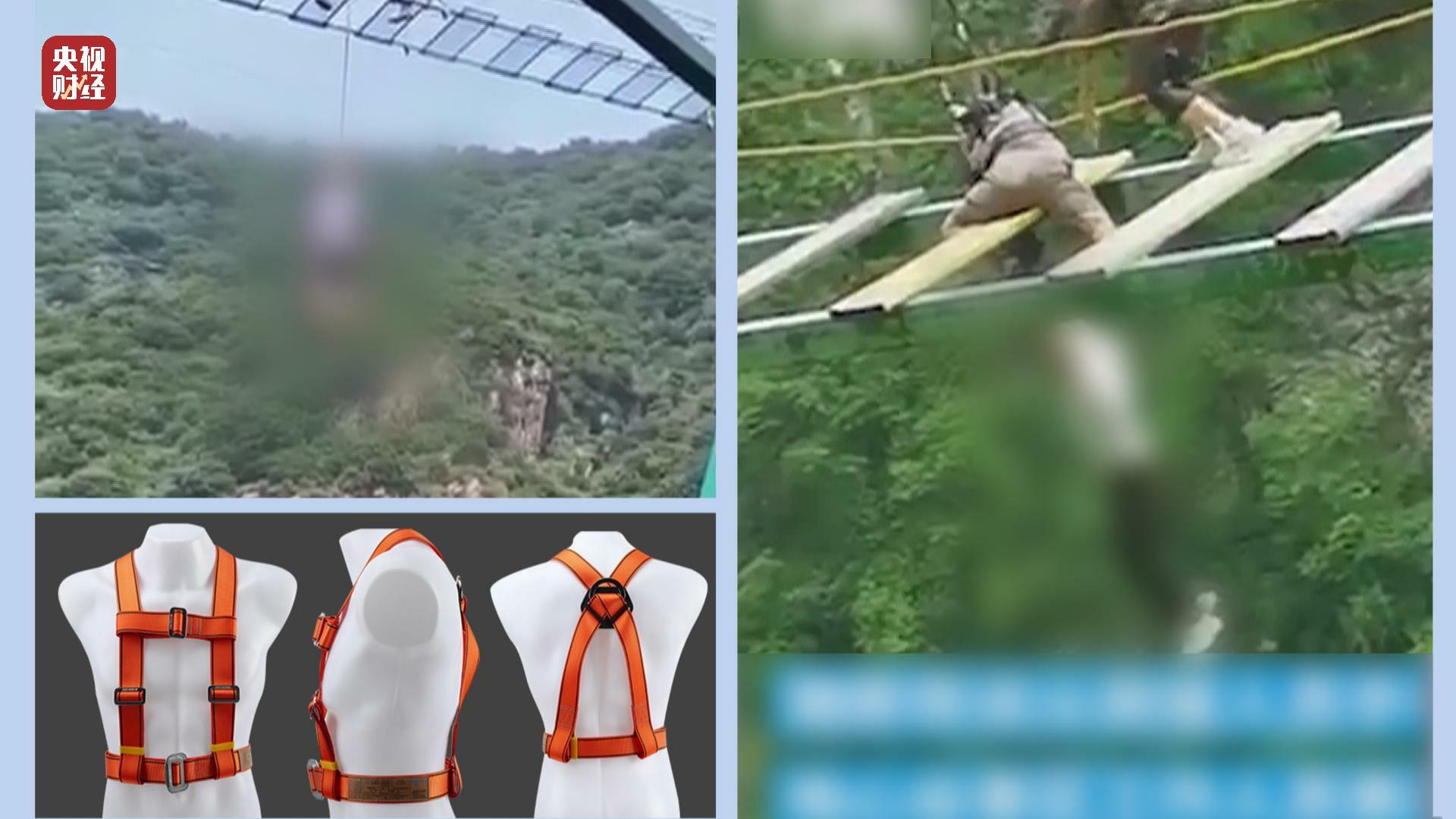 划重点:游客如体验高空吊桥类项目,一定注意选择五点式安全带。游客需根据个人年龄、健康等状况,在专业人员指导指引下,自觉遵守安全规定,谨慎参与高空类高风险项目,不做可能危及自身及他人安全的举动。
