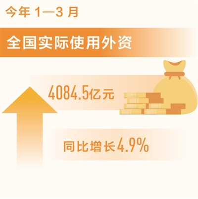 本报北京4月21日电 记者近日从商务部获悉:今年1—3月,全国实际使用外资4084.5亿元,同比增长4.9%。吸收外资实现了“开门稳”。