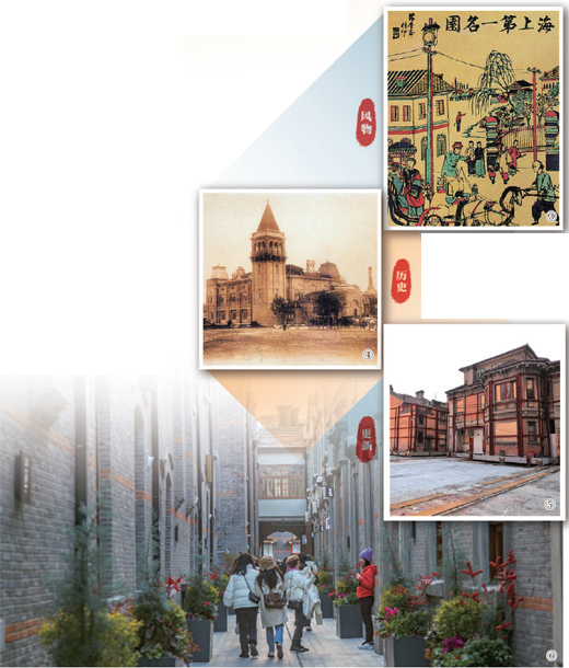 图⑥:游人徜徉于张园的里弄巷道,近距离感受历史建筑之美。