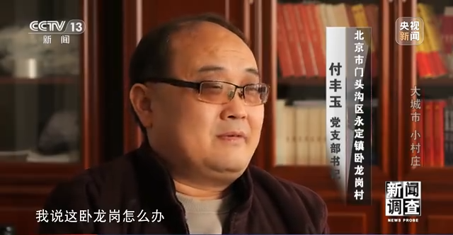 北京市门头沟区永定镇卧龙岗村党支部书记付丰玉:有的人一听政策我得掏钱,你拆迁的有房又有钱,我拆房我还得掏钱,他就有点不平衡。特别是2015年左右,(周边所有村)都全部上楼了,就剩我一个村了,基础设施配套不完善。