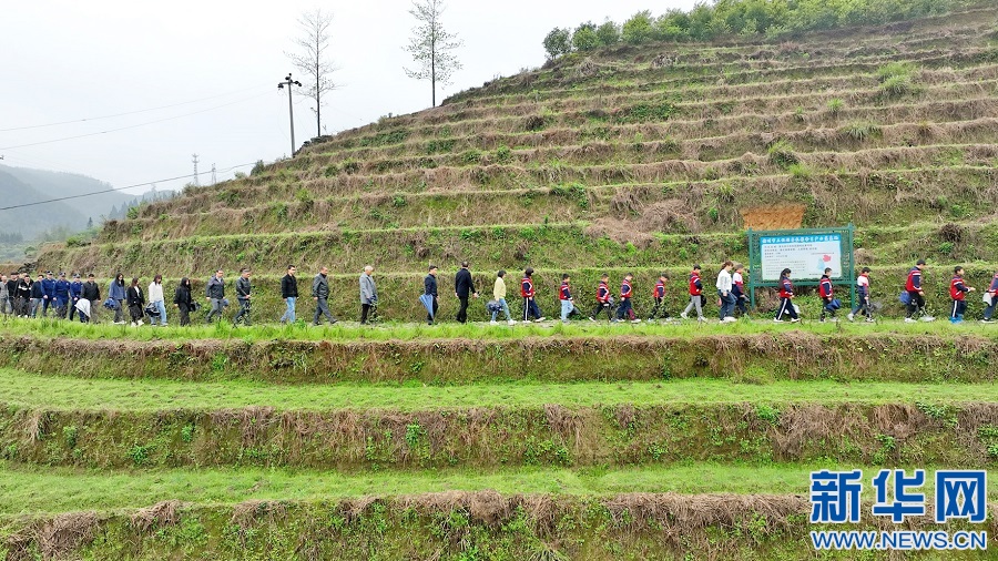 崇义县乐洞乡干部、村民、学子手捧菊花,自发来到白茅坪为红军连长扫墓。新华网发 严毅君 摄