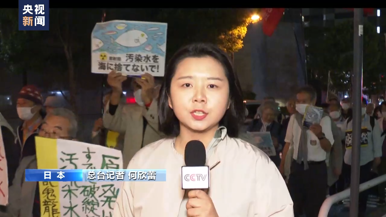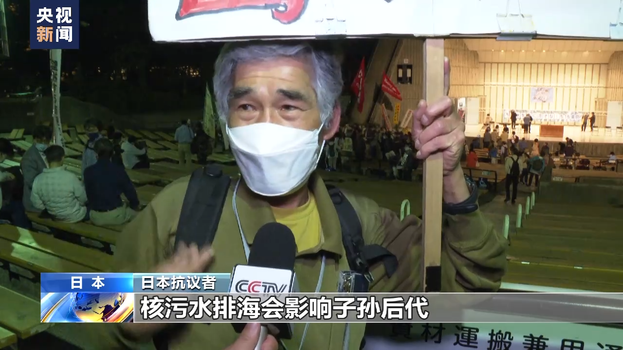 总台记者 何欣蕾:在现场,民众打出条幅,上面写着反对核污染水排放入海,并且喊着保护海洋、保护孩子、保护渔业的口号。大家希望通过这样的方式能够让日本民众更加关注福岛核污水排海的问题。