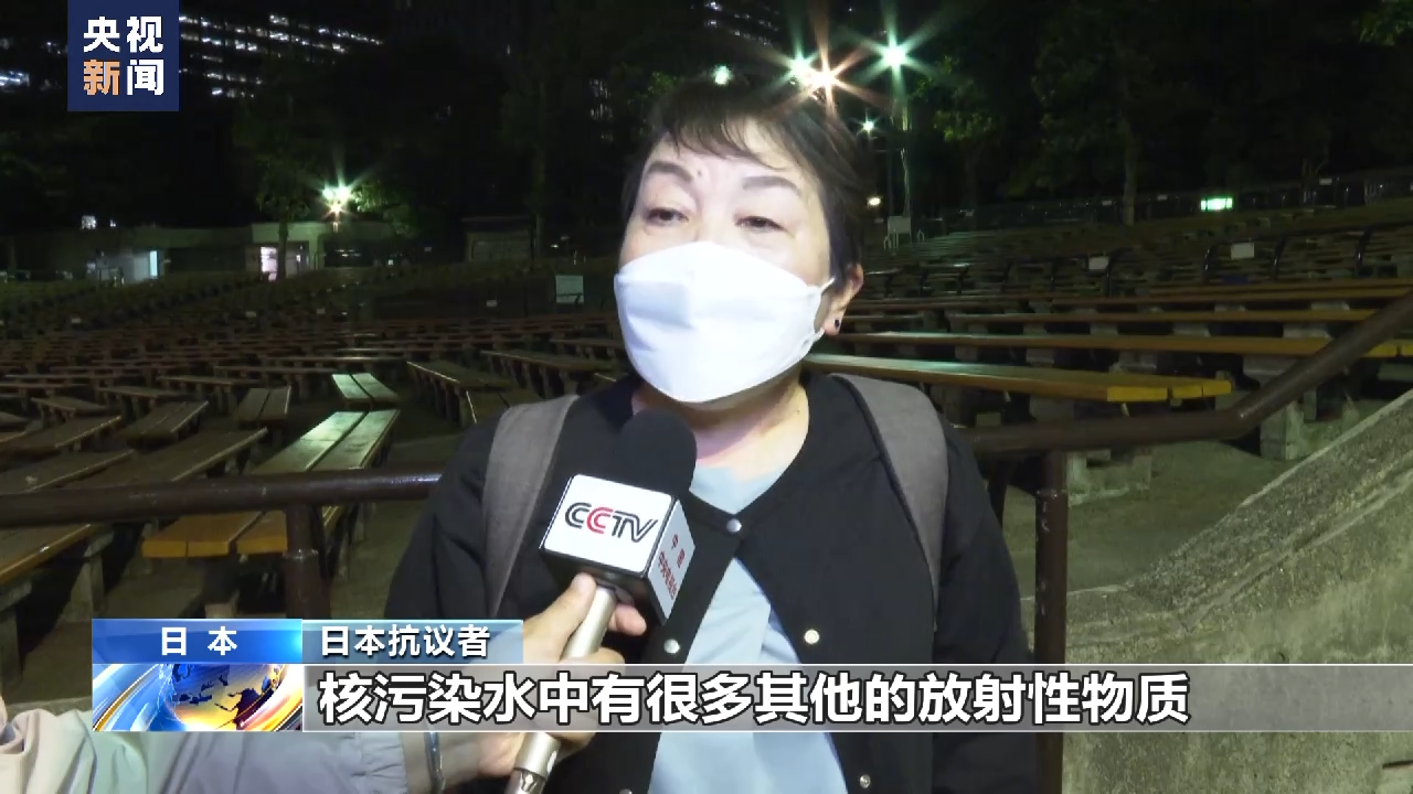 日本抗议者:人们明确知道核污染水中有很多其他的放射性物质,我不认为可以把核污染水稀释之后排海,放射性物质自身会积存,放射性物质会在鱼类以及食物中积存。