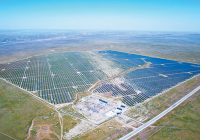 哈萨克斯坦阿拉木图州卡普恰盖100兆瓦光伏电站是哈萨克斯坦单体最大的光伏发电项目之一,也是中哈绿色能源合作项目之一,由寰泰能源与哈萨克斯坦合作伙伴投资建设。图为日前拍摄的卡普恰盖100兆瓦光伏电站。