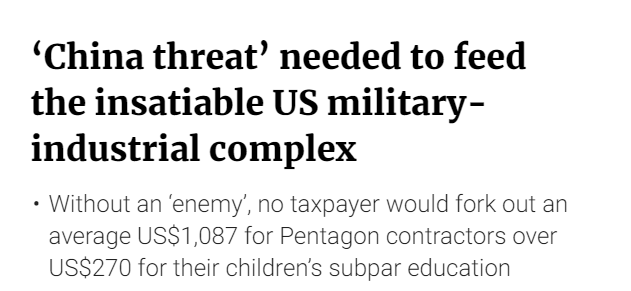 中国日报网5月10日电 南华早报5月7日刊发了题为《美国需要“中国威胁论”养活欲壑难填的军工复合体》的评论文章。