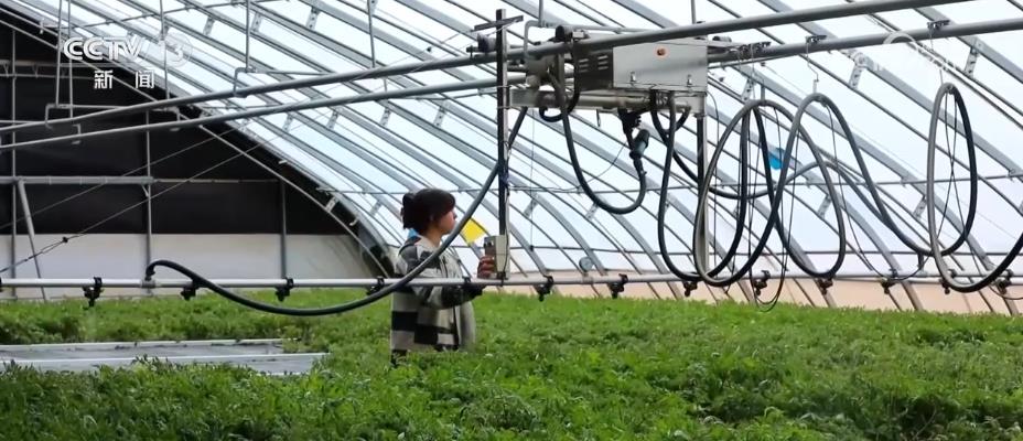 在新疆阿克苏市阿依库勒镇蔬菜产业基地的温室大棚里,工作人员通过手机软件就可以调整棚顶棉被的高度,控制棚内温度。此外,还能做到水肥一体智能浇灌,通过实时监测,可以及时补肥浇水,保证蔬菜健康生长。