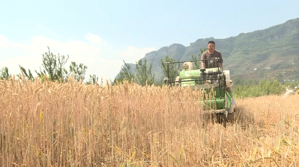 眼下,西南麦区迎来大面积开镰收获。在贵州省毕节市织金县白泥镇,7000亩小麦喜获丰收,伴随着阵阵机器轰鸣声,农户们抢抓农时收割小麦。